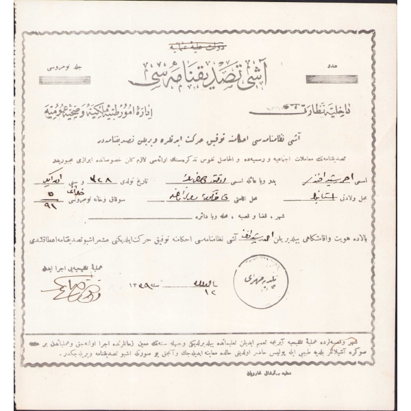 Osmanlıca Aşı Tasdiknamesi, 1329 tarihli, Ahmed Rüşdi Bey'e ait