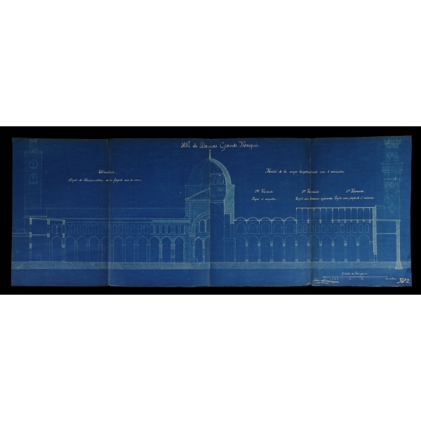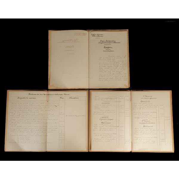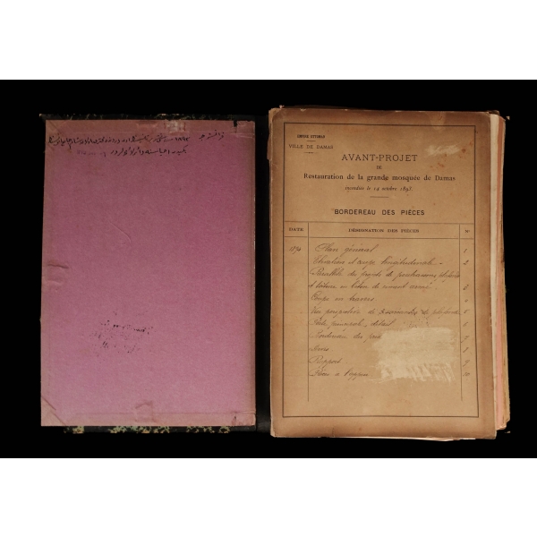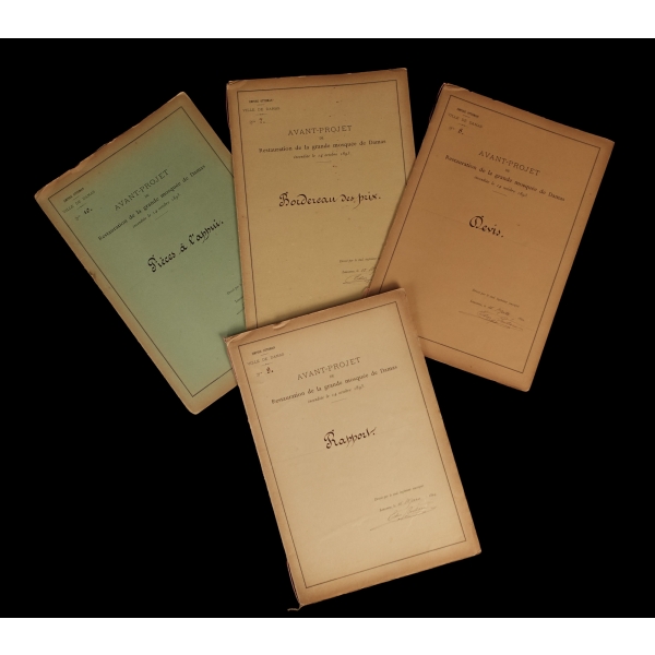 Evrak içeriği: 41x31 cm ilâ 73x54 cm arasında muhtelif ebatlarda yedi adet plan, cami kapılarından birinin sepya fotoğrafı, bilirkişiler tarafından kaleme alınan 10 adet Fransızca raporla, bunların Osmanlıca ve Arapça tercümeleri.