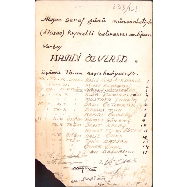 İç kapak "Hareket Ordusu kumandanı ve birinci, ikinci ve üçüncü ordu müfettişi umumiyesi Mahmut Şevket Paşa", "Fevkalade nefides kağıtlı nüshadır", Mecmuada "Devr-i sabıkta Mekteb-i Harbiyede Von der Goltz Paşaya verilen ziyafetin fotoğrafı Phebus Fotoğrafhanesi tarafından çekilmiştir. Sırtı haliyle, 97 sayfa, 16x24 cm