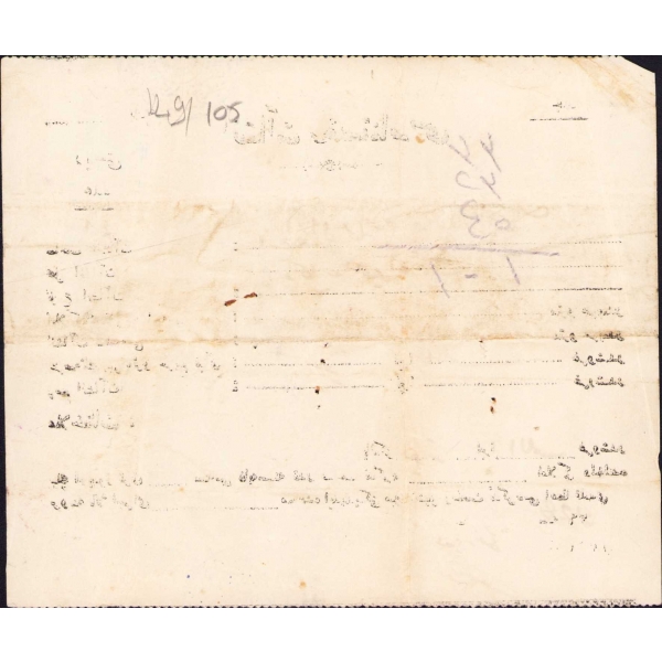 Osmanlı Kandilli Kız Orta Mektebine ait karne, 1331 -1330 dönemi, damgalı, ortadan kırık, 12x21cm