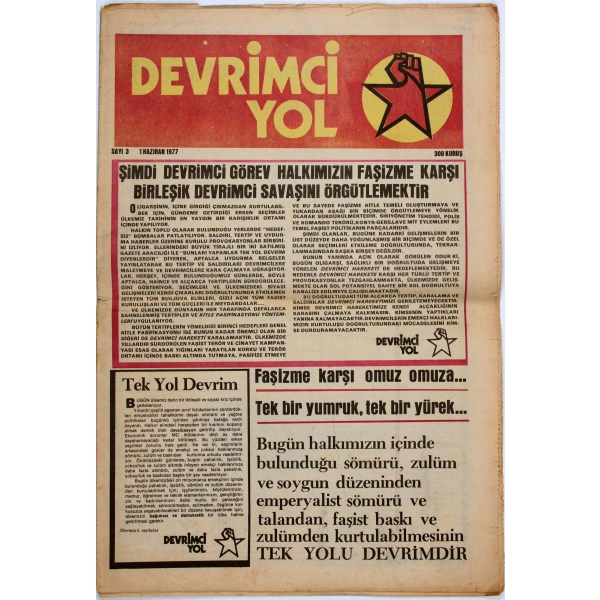 Devrimci Yol gazetesi, 1977, 20 sayfa, 29x42 cm