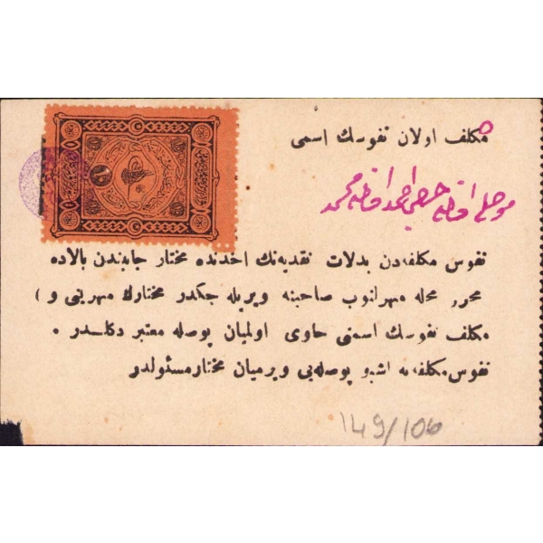 Osmanlı Manastır ve Kosova Vilayetleri antetli Taşlıca sancağı mutasarrıf ve kumandanlığı alisine gönderilmiş olan Hasan Efendinin İlbasan bidayet mahkemesi ceza dairesine tayini ve sicilinin temiz olduğuna dair evrak, 1313, 20x16 cm