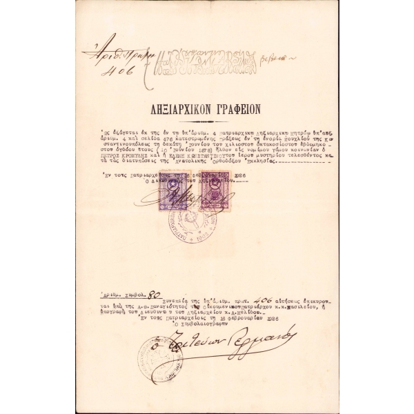 Osmanlıca - Rumca 'Rum Patriği Nüfus Müdüriyeti' damgalı, 1926 tarihli Rumca doküman, 20x34 cm