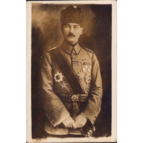 Kalpaklı subayların toplu hatıra fotoğrafı, 16x23 cm