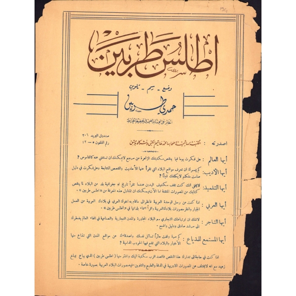 Mısır Prensi Muhammet Ali´nin Resülhattatin Hacı Kamil Bey´e gönderdiği mektubun zarfı, zarf üzerinde Medresetül Hattatin´in adresi bulunuyor, 14x11 cm