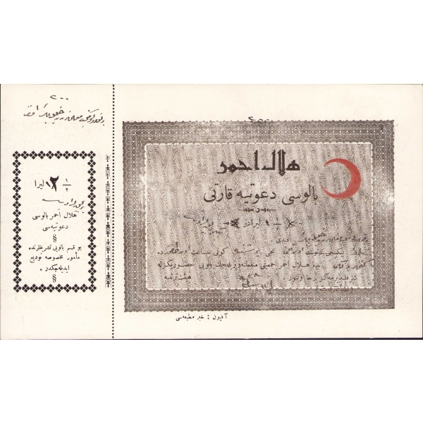 Türkiye Hilal-i Ahmer Cemiyeti Yirmi Beş Kuruşluk Makbuz, 13,5x8 cm.