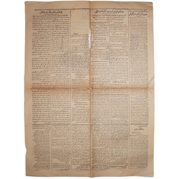 Osmanlıca İkdam gazetesi, 1920 tarihli, "Meclis-i Mebusan Açılmak Üzere", "Darülhilafetü'l aliyye ve Türkiye'nin Mukadderatı", ortadan yırtık, tek sayfa, 44x60 cm