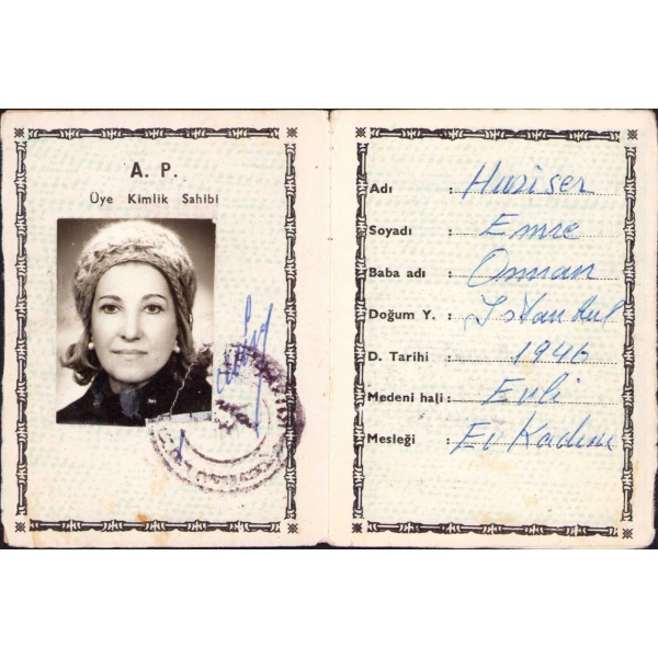 Adalet Partisi hüviyet cüzdanı, 1976, 6x8 cm