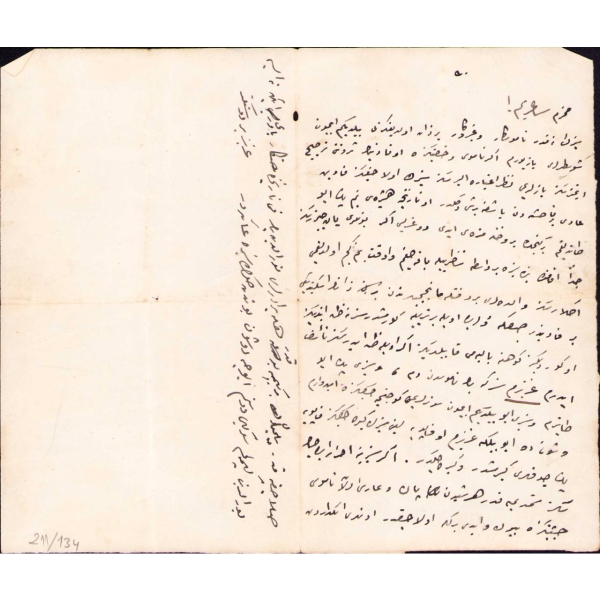 Mektup, "Muhterem ?, Sizin ne kadar namuskâr ve … bir zat olduğunuzu bildiğim için şu satırları yazıyorum eğer namus ve haysiyetinize o kadının servetini tercih etmezseniz yazılarımı nazar-ı itibara alırsınız Sizin olacağınız [alacağınız?] kadın adi bir fahişeden başka bir şey değildir" şeklinde başlamaktadır.