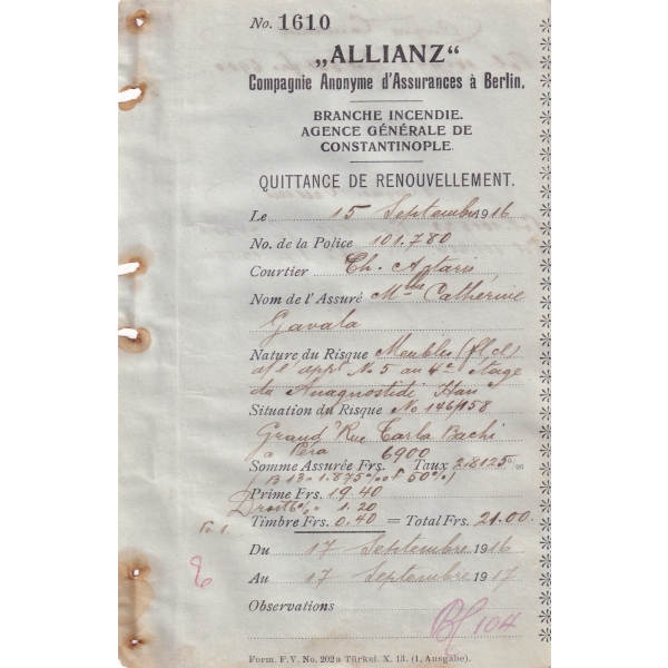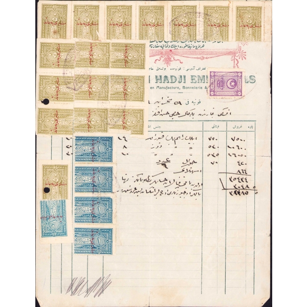 Osmanlı Donanmayı Osmani Muaveneti Milliye Cemiyeti Merkez Umumiyesine ait makbuz, Selanik Matbaası, 1329, 9x10cm