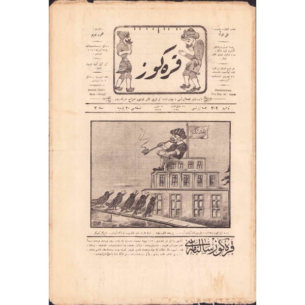 Osmanlıca Akbaba mizah gazetesi, 1928, resimli, bir kenarı kopuk, cilt çıkması, 4 sayfa, 30x45 cm