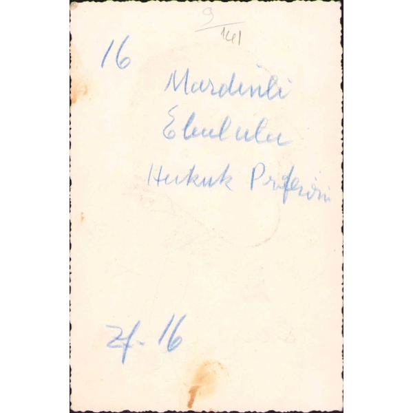 Kalpaklı subay fotoğrafı, arkası Osmanlıca yazılı, kenarları hafif soyulmuş haliyle