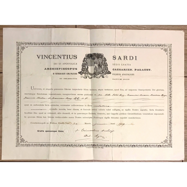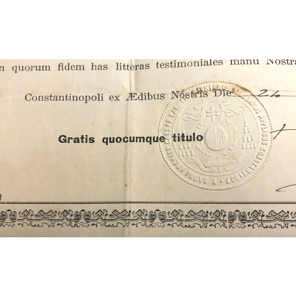 Kartpostal Editörü Zellich Matbaasında Tab Olunmuş İstanbul Apostolik Kilisesinden Verilmiş Berat 1909 29 x 40 Cm