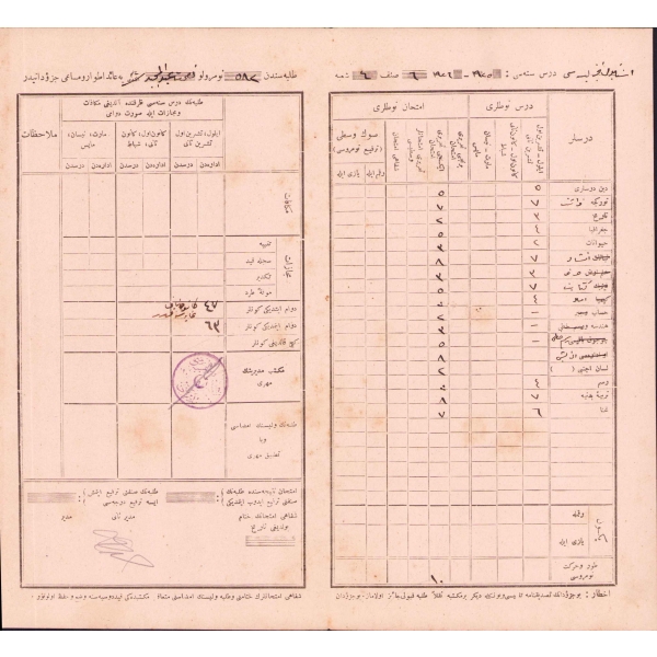 Osmanlıca İstanbul Kız Lisesi, 1926 tarihli karne, 12x20 cm