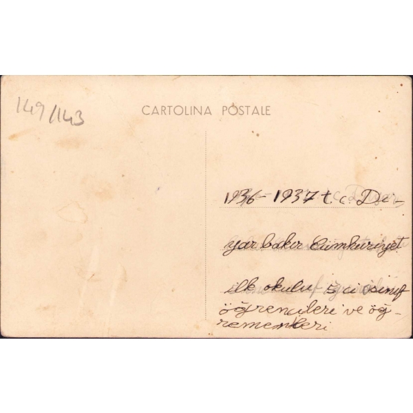 1936 - 1937 Diyarbakır Cumhuriyet İlk Okulu 5. sınıf öğrencileri ve öğretmenleri