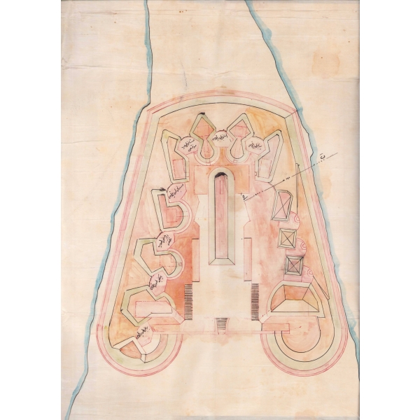 El Çizimi Birinci Dünya Savaşı Çanakkale Gelibolu'daki tabyadaki askeri taburların mevkiilerini gösteren harita, 53x93 cm.