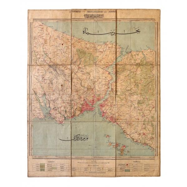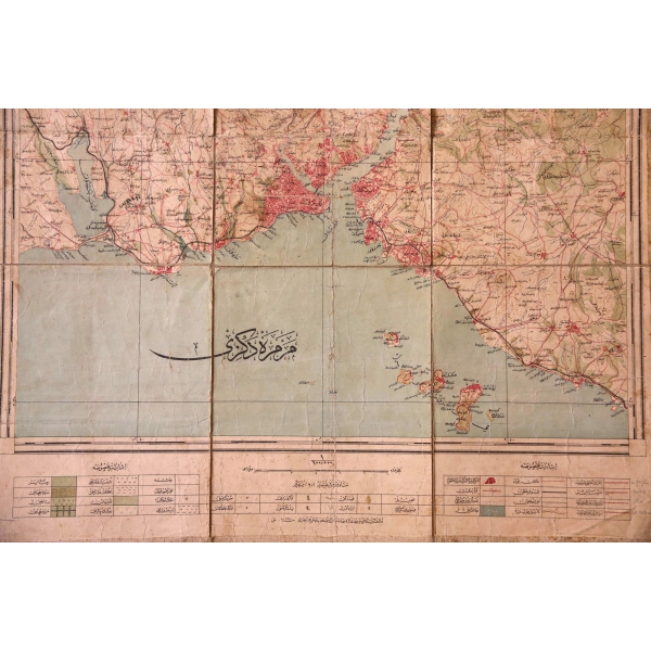 Haritanın lejantında Hristiyan ve Yahudi mezarlıkları, bahçe ve ormanlar, kargir binalar, ormanlar, köprüler şimendifer yolları vesair yollar gösterilmektedir.