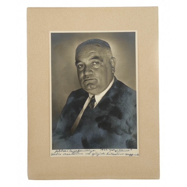 Yahya Kemal Beyatlı, sağlığında hiç kitap yayımlamamış olmasına karşın, dergi ve gazetelerde yayımladığı şiirleri ve yazılarıyla, yaşadığı dönemde Türk şiirinin ve nesrinin en büyük temsilcilerinden biri olarak kabul edildi, edebi çevrelerde hep “üstat” olarak anıldı ve her çevreden saygı gördü. Fikrî, tarihî ve edebî eğilimleri, Fransa´da geçirdiği yılların etkisinde gelişen Beyatlı, siyasi görevlerde de bulunmuş ancak TBMM üyeliği ve elçilik yıllarını daha çok çevresindekilerle tarih ve edebiyat sohbetleri, konferanslar ve neşir faaliyetleriyle geçirmiştir. Fotoğraf, "Abbas Beyefendiye, Hâlis asaletine ve güzide hilkatına saygımla, 1947, Yahya Kemal" ithafıyla imzalıdır.