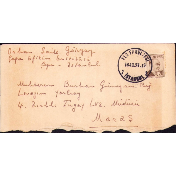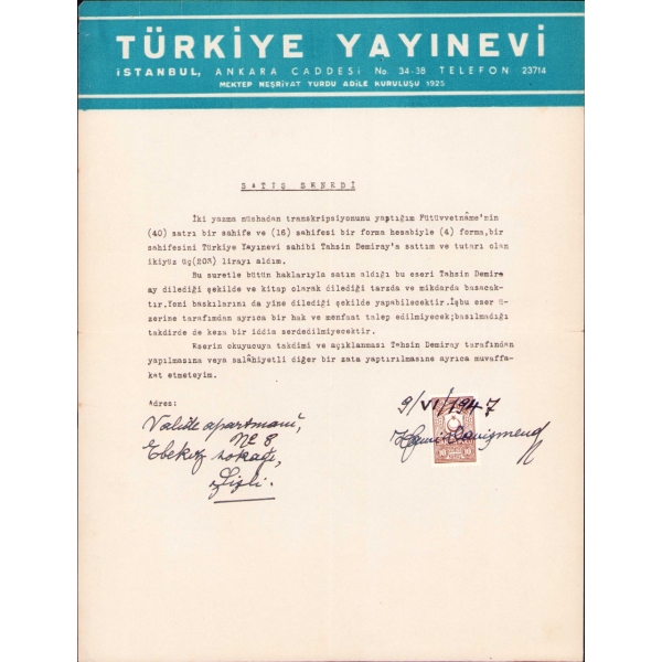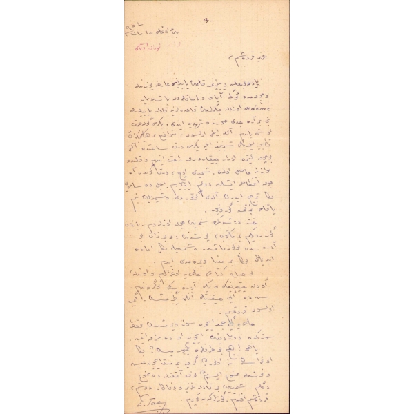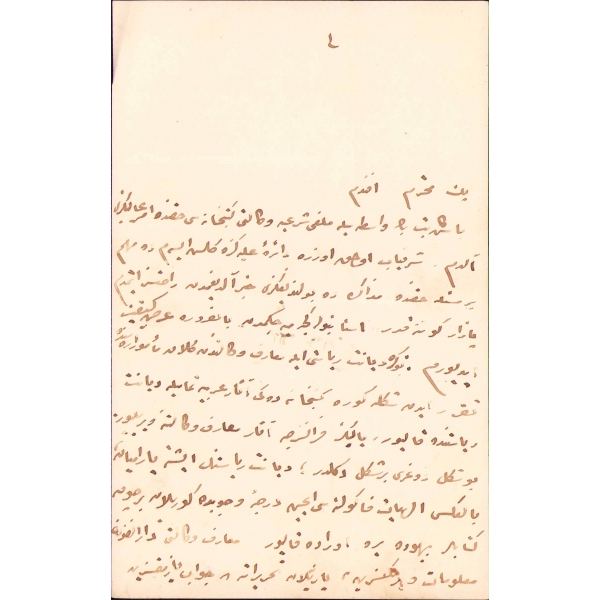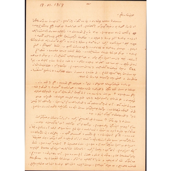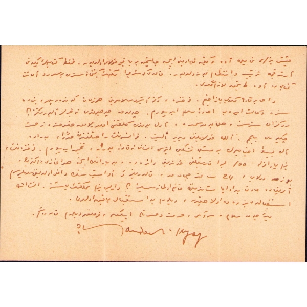 Yazar Ercüment Ekrem, vefatından iki sene önce kaleme aldığı bu mektubunda hastalığından söz etmektedir. "Bu sabah kitapçı Hilmi'ye uğradım ve ondan evden çıktığını ve yeni adresini öğrendim. Hilmi'ye geçen cuma için söz vermişsin fakat sözünde durmadığın için o da merak etmiş. Yahu! Hiç bu taraflara geçmiyor musun? Bana uğrasan ne olur? Gerçi bir müddet için ayş u nuşdan men' isem de laf etmekden de men' değilim ya."