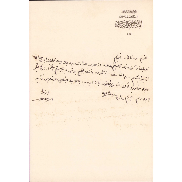 Mektuplar farklı tarihlerde yazılmış olup 1928 tarihli olan İstanbul Darülfünunu İlahiyat Fakültesi antetlidir. Bu belge İsmail Hakkı Bey'in İlahiyat Fakültesi'nde müderrislik yaptığı döneme rastlar. 1931'de ise reisi seçilmiştir. "Pazartesi günü meclis müdiri içtima etti. Fuad Bey tarafından namzetleriniz vaz' olundu." Mektuplar idâri yazışmalarla alâkalıdır. İmzalar İzmirli İsmail Hakkı şeklindedir.