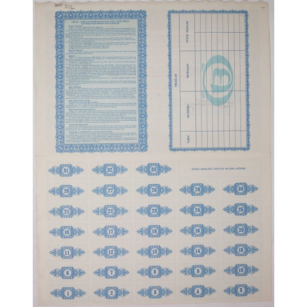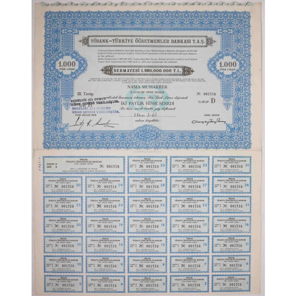 Töbank - Türkiye Öğretmenler Bankası T.A.Ş. hisse senedi, 32x42 cm