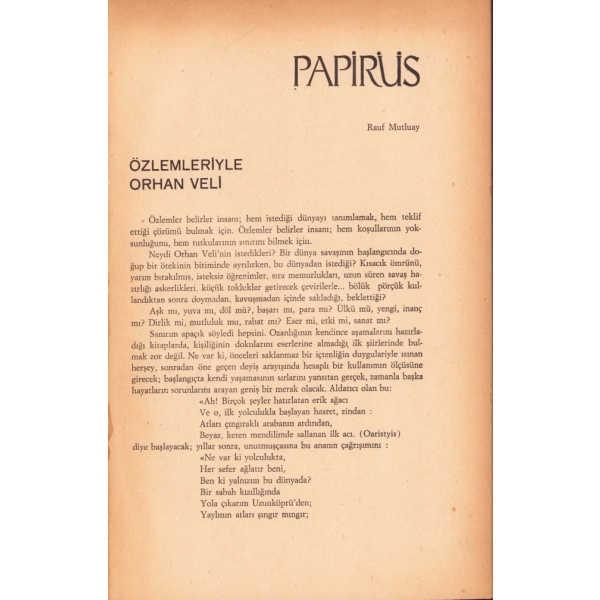 Cemal Süreya'nın Çıkardığı Papirus Dergisi'nin Orhan Veli Özel Sayısı, 1967, 58 sayfa, 15x23 cm