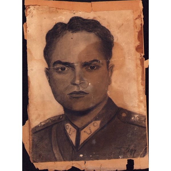 Kara kalemle kopya edilmiş subay fotoğrafı, imzalı, 18x24 cm, haliyle