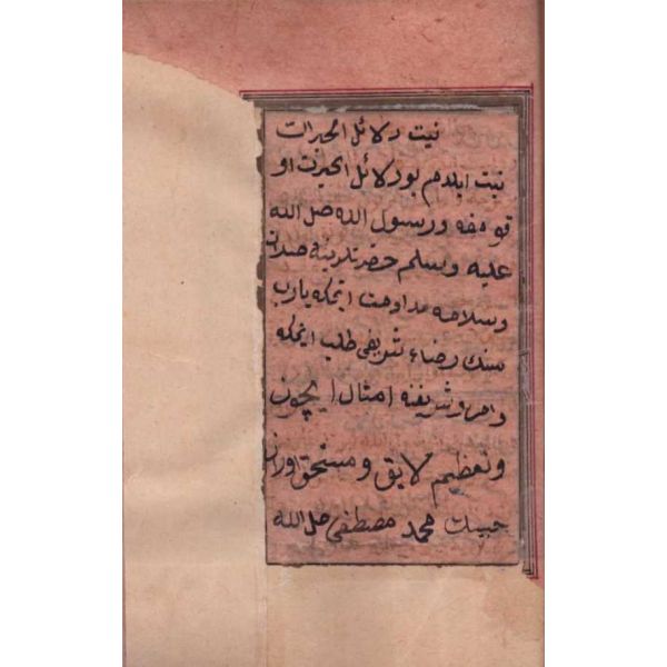 Yazıcıoğlu Mehmed Efendi´nin, kardeşi Ahmed Bican´ın kaleme aldığı "Meġāribü’z-zamân" adlı eserinde özellikle Hz. Peygamber ve ashabının konu edildiği kısımları Türkçe´ye tercüme etmesiyle meydana gelen eseridir. Peygamber´in hayatını anlatan siyer-i nebilerin özelliklerini göstermekle birlikte mevlid özelliği de taşımaktadır. Satışa sunulan el yazması nüsha, Osmanlı devrinin büyük hattatlarından Hacı Mustafa Rakım Efendi´nin talebesi Seyyid Eyüb Efendi tarafından nesih hat ile kaleme alınmıştır.