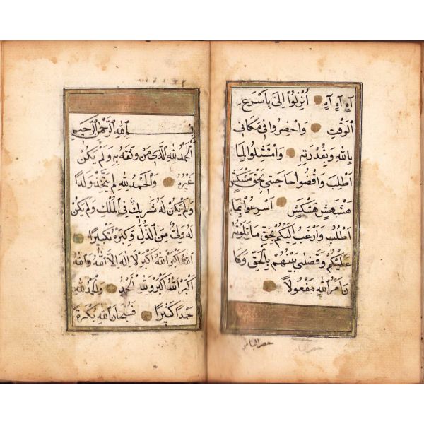 Tehlilat-ı Kuran-ı Kerim, ve Muhafaza ayetleri, Arapça, Ali b. Muhammed Giridi Kandiyevi, 1222 tarihli, tezhipli, 69 varak, ebrulu cildinde, 12x17,5 cm