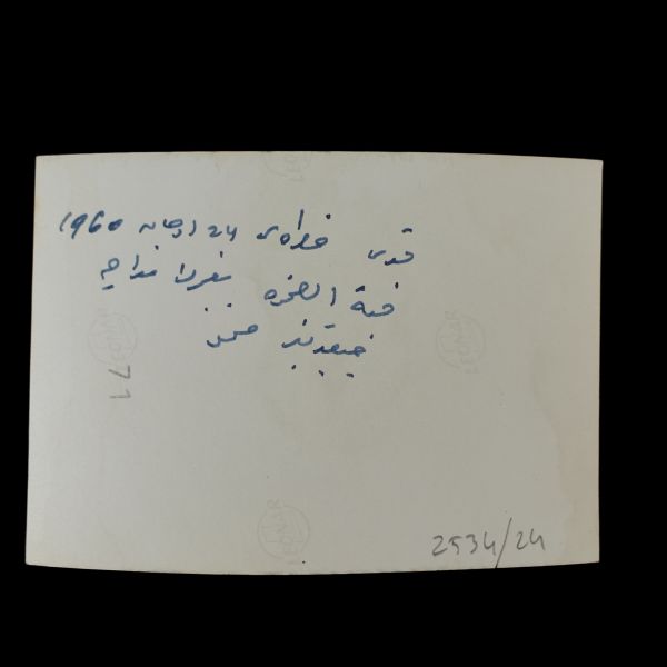 Arka yüzüne el yazısıyla açıklama yazılmıştır: "Sahaf Nizamettin Aktuç ve Arslan Kaynardağ. 1955 Şubat, İstanbul. Arslan Turgut Kaynardağ, Nizamettin Aktuç´un yanında çalıştığı sırada."