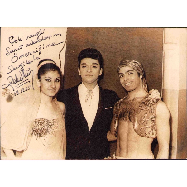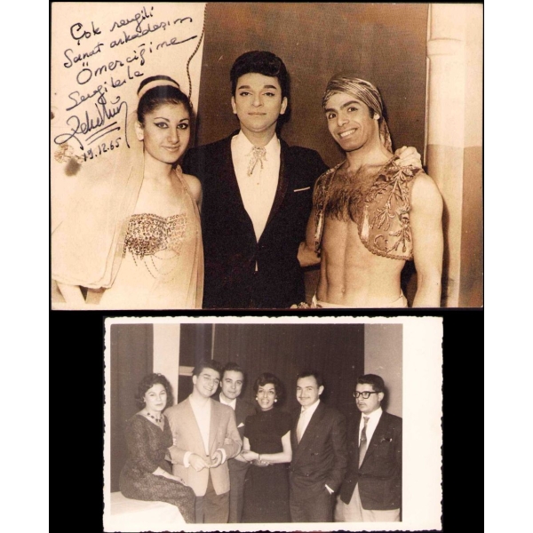 Sanat Güneşi'miz Zeki Müren'in (1931 - 1996), biri kadın diğeri erkek iki dansöz arasında çektirdiği ve "Çok sevgili sanat arkadaşım Ömerciğime sevgilerle" ibaresiyle imzaladığı fotoğrafıyla, dostlarıyla birlikte çektirdiği bir başka fotoğrafı…