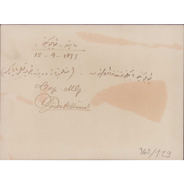 Fotoğraf üzerinde yer alan ithaf, "Sevgili Nezahat´e eski bir hatıranın yeni hatırası" şeklindedir.