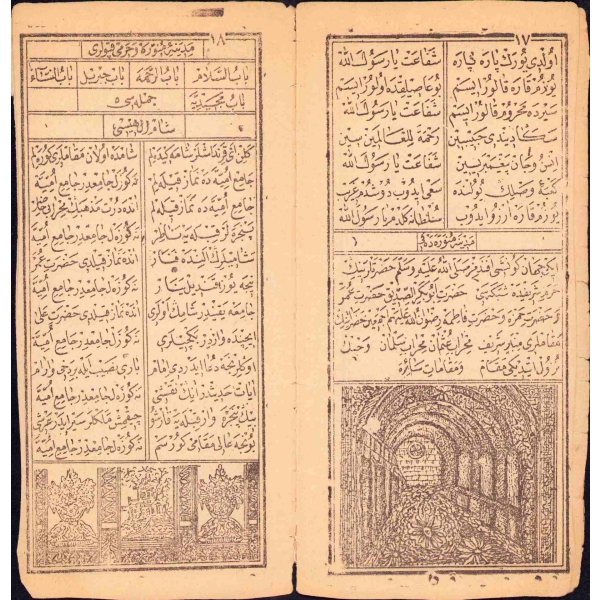 Hattat Şeyh Hamdullah sülüs nesih hadis koltuklu levha, altın tezhipli, müze camında eski çerçeveli, arka yüzünde iki ayrı yerde "Şeyh Hamdullah" ibraresi mevcuttur, çerçeve içi ölçü 25x19 cm