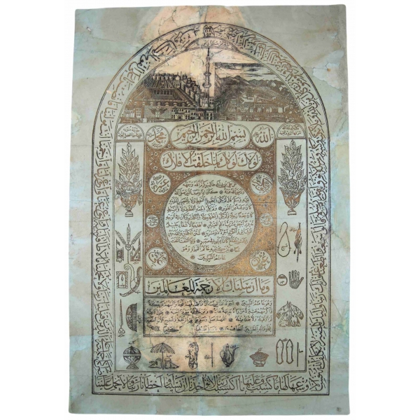 Osmanlı Hat Sanatı'nda "Şevki Mektebi" isimli yazı ekolünün sahibi Mehmed Şevki Efendi ile dayısı ve aynı zamanda hocası olan Mehmed Hulusi Efendi'yle birlikte verdikleri bu icazetame hat sanatımızın tarihine örnek teşkil edebilecek bir icazetnamedir. İlk icazetini kendisi gibi hattat olan dayısı Mehmed Hulusi'den alan Mehmed Şevki Efendi, Hafız Osman ve Mustafa Rakım'ın yazılarını inceleyerek sülüs, nesih ve rik'ada "Şevki mektebi" ismiyle anılan bir üslûbun sahibidir. Sanat hayatı boyunca her gün ilerleme gösteren Şevki Efendi, 1873 yılından itibaren daha narin bir üslupla son derecesine eriştirdiği bu yazı türlerinde günümüze kadar son merhale sayılmaktadır. Hattat Şevki Efendi'ye sülüs-nesih ve rik'a dersleri veren ve onun ilk hocası sayılan Mehmed Hulusi, Koca Râgıb Paşa Kütüphanesi birinci hâfız-ı kütübü, Nusretiye Camii kürsü şeyhi ve birçok hattat yetiştiren bir hocadır. Ali Vasfi'nin talebesi olmakla beraber hat sanatındaki yeri orta derecede olduğu için kabiliyetli bulduğu yeğenine icazet verdikten sonra onu, hattını ilerletmesi için Kazasker Mustafa İzzet Efendi'ye götürmek istemiş ancak Şevki Efendi bunu kabul etmemiştir. *Çerçevenin ölçüsü 31x25 cm'dir.