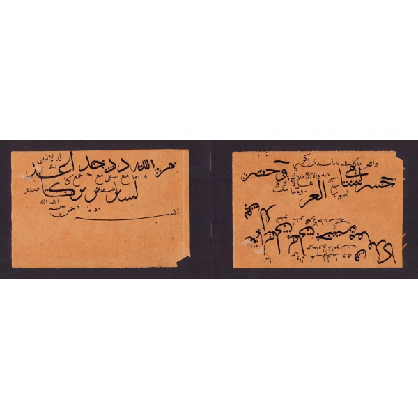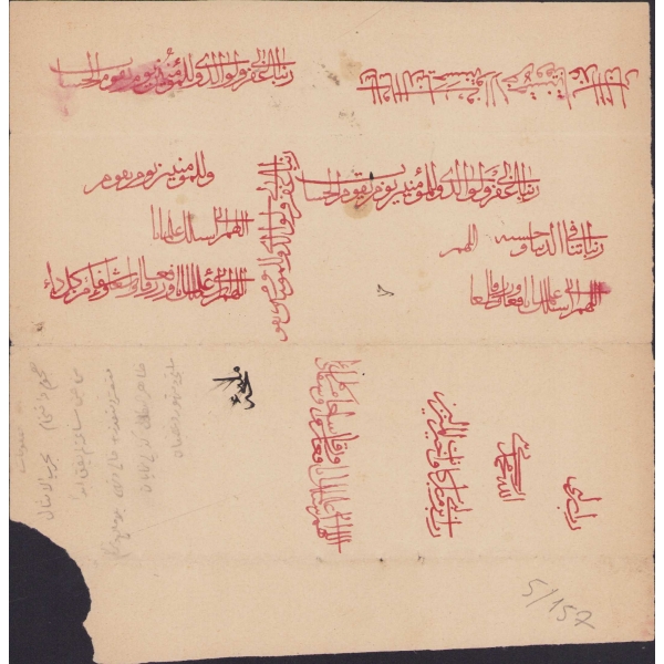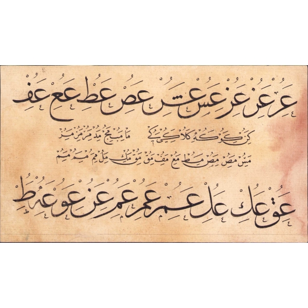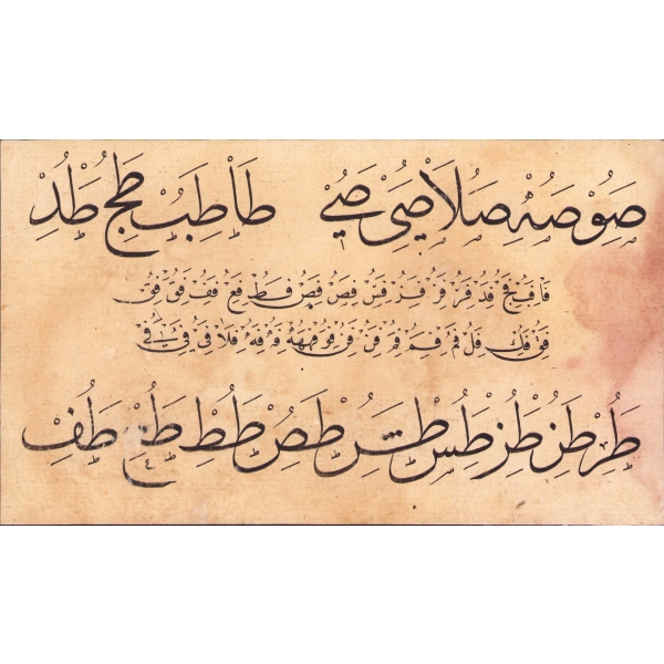Halim Efendi´nin hat sanatındaki kudretini gösteren oldukça küçük bir besmele istifidir. Yazının hemen dışındaki siyah renkli desenlerin de Halim Efendi´ye ait olduğu düşünülmektedir.