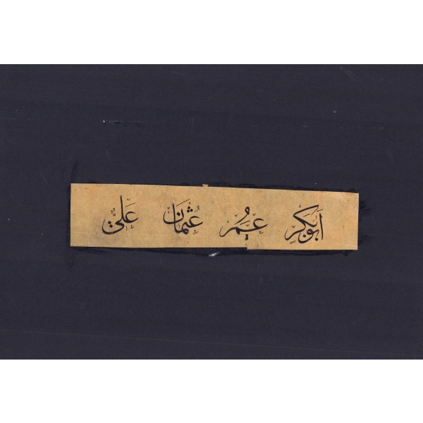 Sol tarafına 99 (1299) tarihi düşülmüştür. Sülüs kısımda hurufat meşkinin bittiği ve ebced harfleri yazılıdır. Nesih kısımda Hz. Ali'nin "Allah'ın aslanı" olduğunu söyleyen hadis-i şerif vardır.