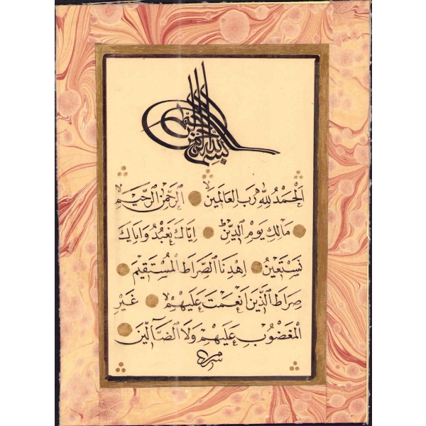 Hattat Halim terekesinden çıkan yazılardandır. Topkapı sarayında bulunan Şevki Efendi´nin hayli küçük ebattaki hilyesine bir nazire olarak yazıldığı düşünülmektedir.