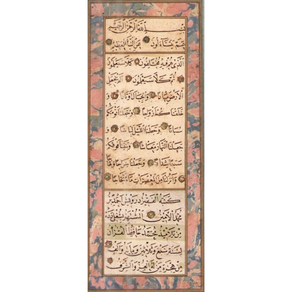 Alt kısmında 2 Ağustos 1958'de Halim Bey evinde ihda etdi." yazılıdır. 1898’de İstanbul’da doğan Halim Özyazıcı’nın asıl ismi Abdülhalim’dir. Esekapı İbtidai Mektebi’nde ve Aksaray Gülşen-i Maarif Rüşdiyesi’nde eğitim görmüştür. Gülşen-i Maarif Mektebi’nde Hattat Hamid Aytaç’tan rika, sülüs, nesih ve divani yazılarını meşketti. Rüşdiye’den mezun olduktan sonra, Sanayi-i Nefise Mektebi’ne kaydoldu. 1915’te ise Medresetü’l Hattatin’e geçti. Medresetü’l Hattatin’de ise Hasan Rıza Efendi ve Kamil Akdik’den sülüs, nesih, rika, Hattat Hulusi Efendi’den talik, İsmail Hakkı Altunbezer’den celi sülüs, Ferid Bey’den divani ve celi divani yazılarını meşk etmiştir. Divan-ı Hümayun kalemi ve Harbiye Nezareti’nde vazife alan Hattat Halim Efendi, 1924’te Bab-ı Ali’de bir yazıhane açmıştır. Hattat Halim Özyazıcı, 1946 senesinde Devlet Güzel Sanatlar Akademisi’ne hat hocası olarak vazifelendirilmiştir. 1964’de vefat eden Hattat Halim Özyazıcı’nın kabir Kozlu Mezarlığı’ndadır.