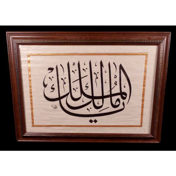 Eserde yer yer silinmeler mevcuttur. Özellikle ketebe bölümü silik vaziyettedir. Dönemine ait ahşap çerçeve üzerine yapıştırılmıştır. Görselleri inceleyerek pey veriniz.