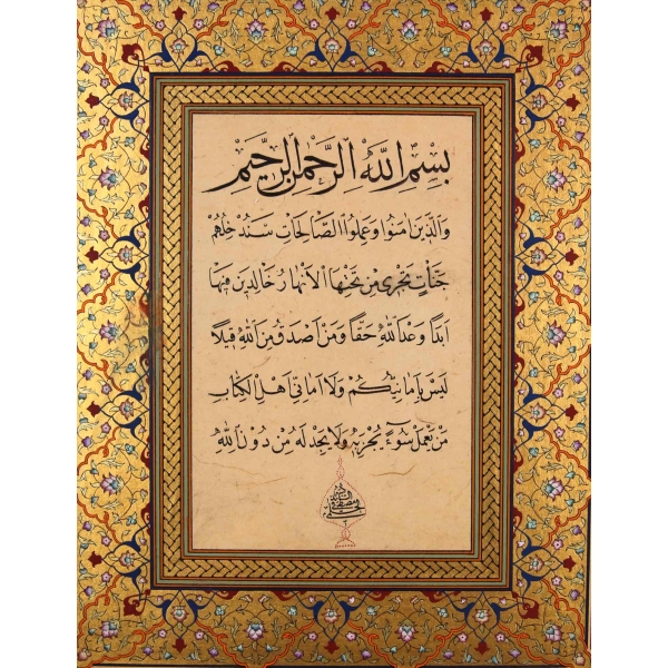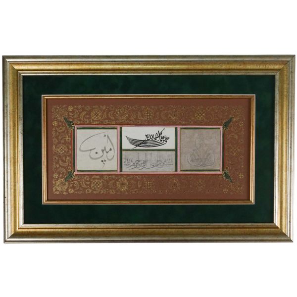 Bu en'am içerisinde hattatın tasarımıyla Hz. Muhammed'in ayak izi, sancağı, mührü gibi özel formlarda resimli yazıları ve sahabe-i kiram isimlerinin istifleri bulunmaktadır.