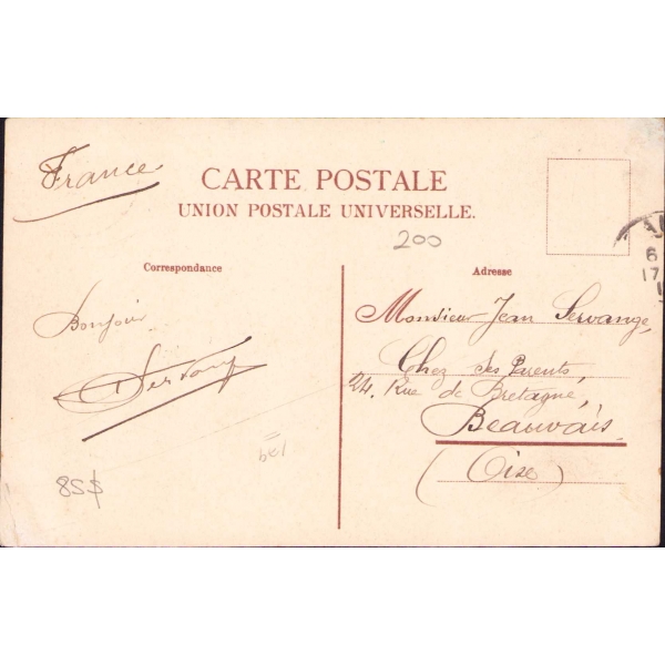 "Çiçeklerin dili" fransızca kartpostal, postadan geçmiş, 1916 Haydarpaşa adresli, Ali Galip Beye gönderilmiş Osmanlıca Kadıköy damgalı pullu.