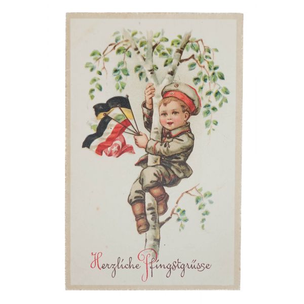 İttifak devletlerinin bayraklarını elinde tutan çocuk görselli kartpostal, 14x9 cm...