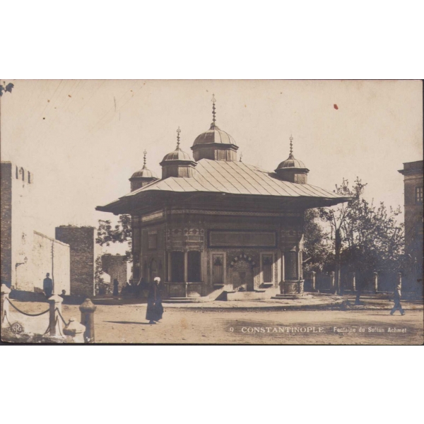 Constantinople Sultan Ahmet Çeşmesi kartpostal, Osmanlı ithaflı imzalı