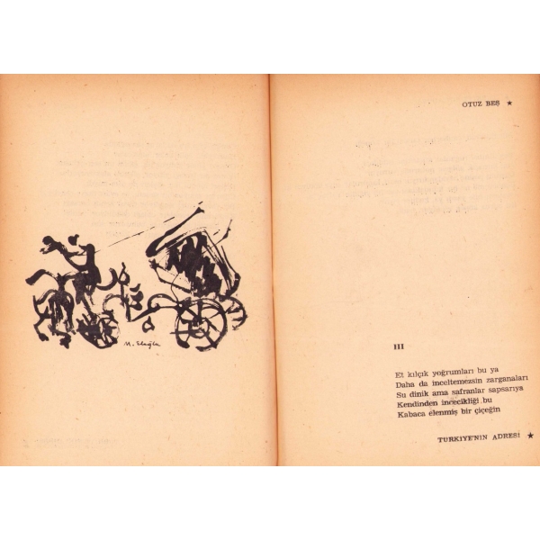 İthaf, "Bazen görsellik, bilmenin üzerine otururur, o zaman yaşanmışlıklar ve yaşanılacaklar çok kolay örtüşür. İşte sevgili büyük usta Behruz Çinici ile böyle oldu. Altuğ da eklendi. SALİ Kasım 2001 İST." şeklindedir.
