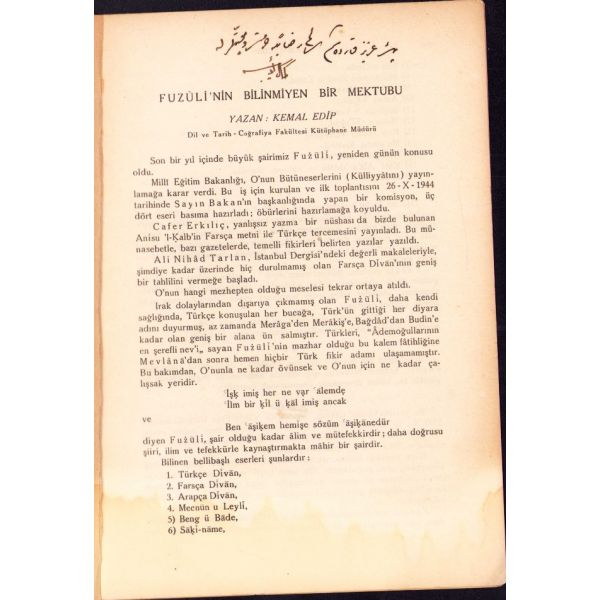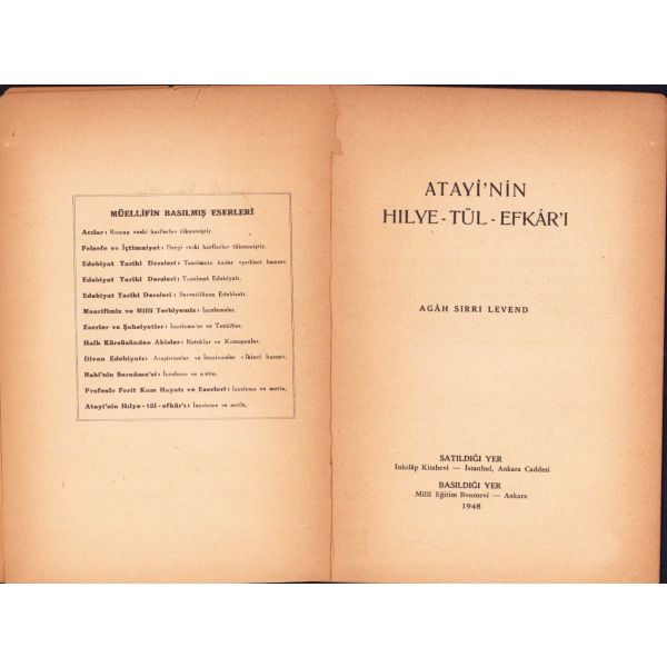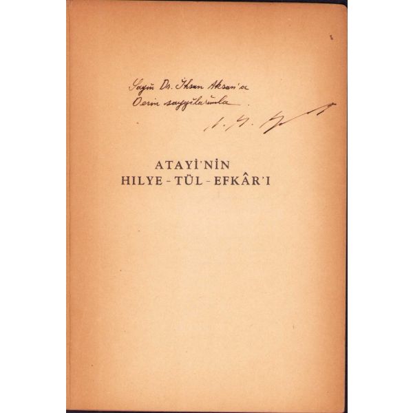 İthaf, "Sayın Albay Arif Seyhun'a derin sevgilerimle. 7.XII.1945, Kütahya Milletvekili" şeklindedir. Dilbilimci ve Edebiyatçı Besim Atalay 1920'de bağımsız milletvekili olarak 7 dönem Kütahya'da görev yapmıştır. 1945 yılında Albay Arif Seyhun'a ithaf edilmiştir.