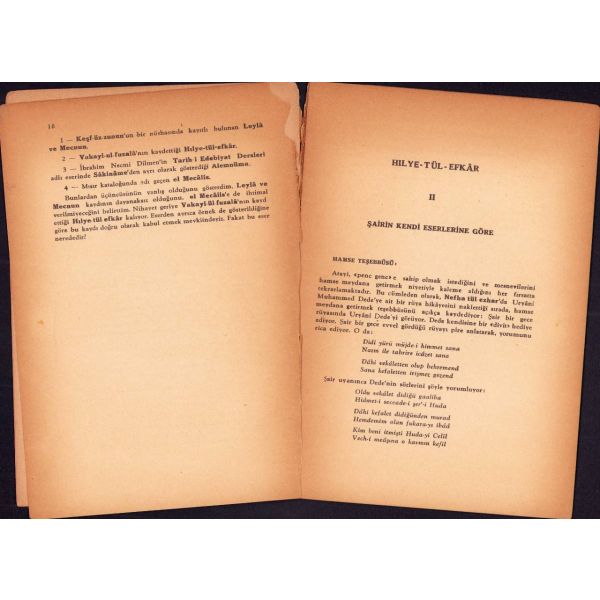 İthaf, "İstanbul Halkevi kütüphanesine edebi hatıram! Üsküdar: 9.4.934. Emniyeti umumiyle eskarı neşriyat şubesi ve sabık Gümüşhane mektupçusu Filorinalı Nazım" şeklindedir. Büyük bir Abdülhak Hamid hayranı olan, kendisini Hamid'in varisi olarak gören bu yüzden Tevfik Fikret ve Peyami Safa tarafından alaycı bir biçimde "şiir kralı" lakabı takılan Florinalı Nazım'ın şiir kitabıdır.