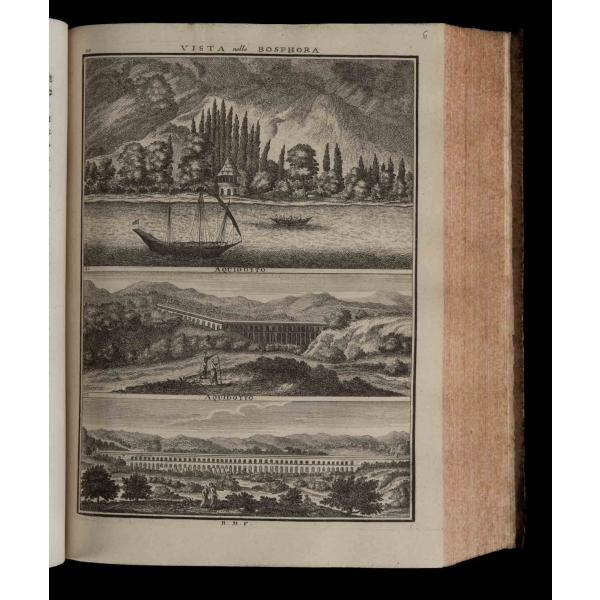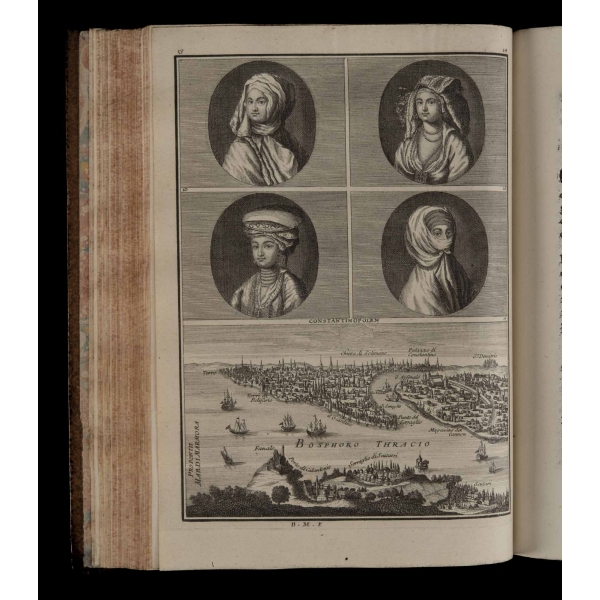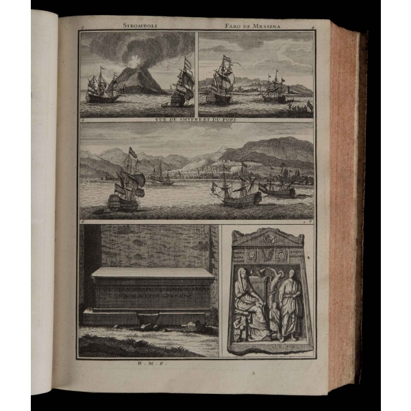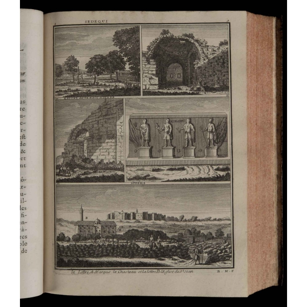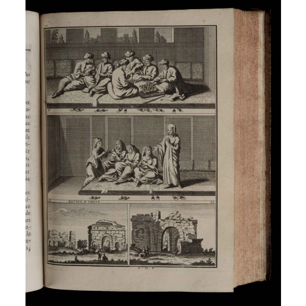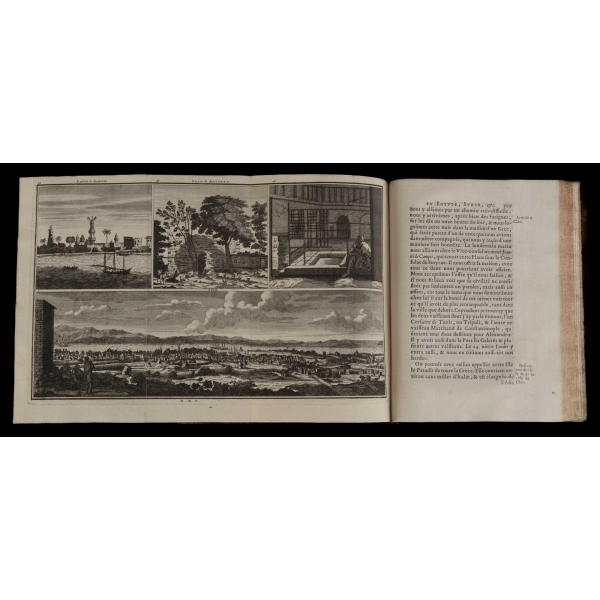 Birinci cilt: 1 katlanır harita, 1 katlanır gravür, 12 tam sayfa gravür, İkinci cilt: 3 katlanır gravür, 14 tam sayfa gravür, Üçüncü cilt: 2 katlanır harita, 1 katlanır gravür, 12 tam sayfa gravür, Dördüncü cilt: 6 katlanır gravür, 1 katlanır planş, 1 tam sayfa harita, 23 tam sayfa gravür, Beşinci cilt: 12 tam sayfa gravür.