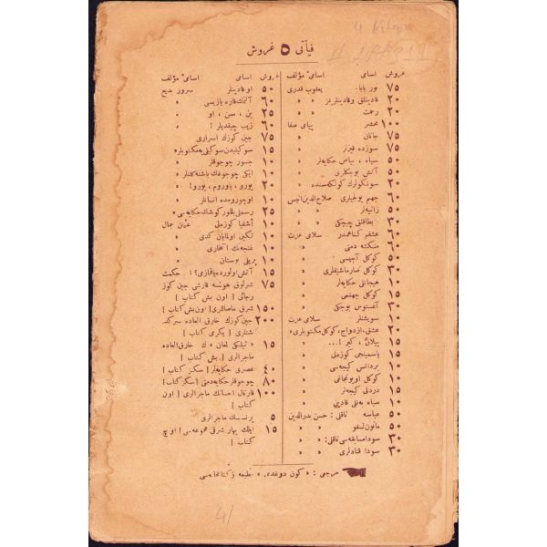 Kitapta "War Service Library" adlı bir ex-libris vardır. Altına iliştirilen etikette kitabın orduya "hizmetinin" tamamlandığı ve İstanbul Kız Koleji´ne (C.C) gönderildiği yazılıdır. İç kapaklarda kolejin kitaplığından düşüldüğüne dair mühür basılıdır.