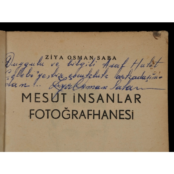 "Kültür müşteşarı", Türk eğitimci yazar, modern Türk kütüphanelerinin kurucularından Adnan Ötüken'e ithaflı ve imzalı.... İthaf, "Kültür müşteşarı Sayın Ötüken´e sevgilerimle. 1966" şeklindedir.
