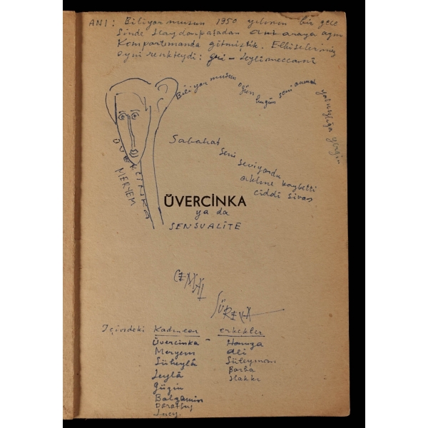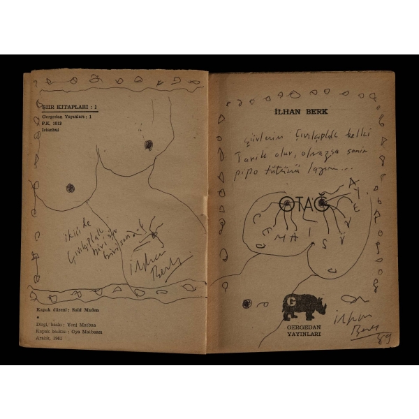 Behçet Necatigil´in ifadesiyle, "Türk şiirinin Uç Beyi" İlhan Berk tarafından "Canım Bilge Karasu´ya." ithafıyla imzalanan ve birtakım notlar düşülen kitap, yine İlhan Berk tarafından çizilen nü figüratif desenlerle bezenmiştir.